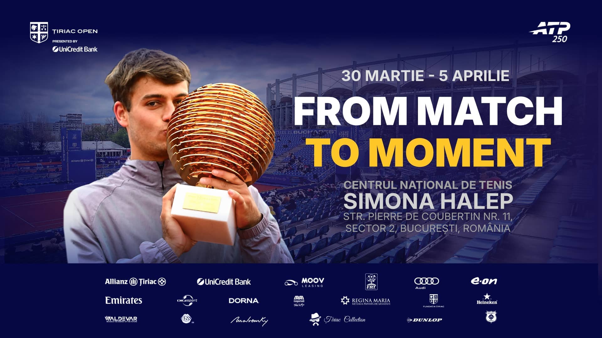 Competiția, încadrată în circuitul ATP 250, se va desfășura în perioada 30 martie - 5 aprilie 2026, la Centrul Național de Tenis „Simona Halep" din București, locație devenită deja un reper pentru tenisul de înalt nivel din țara noastră.
