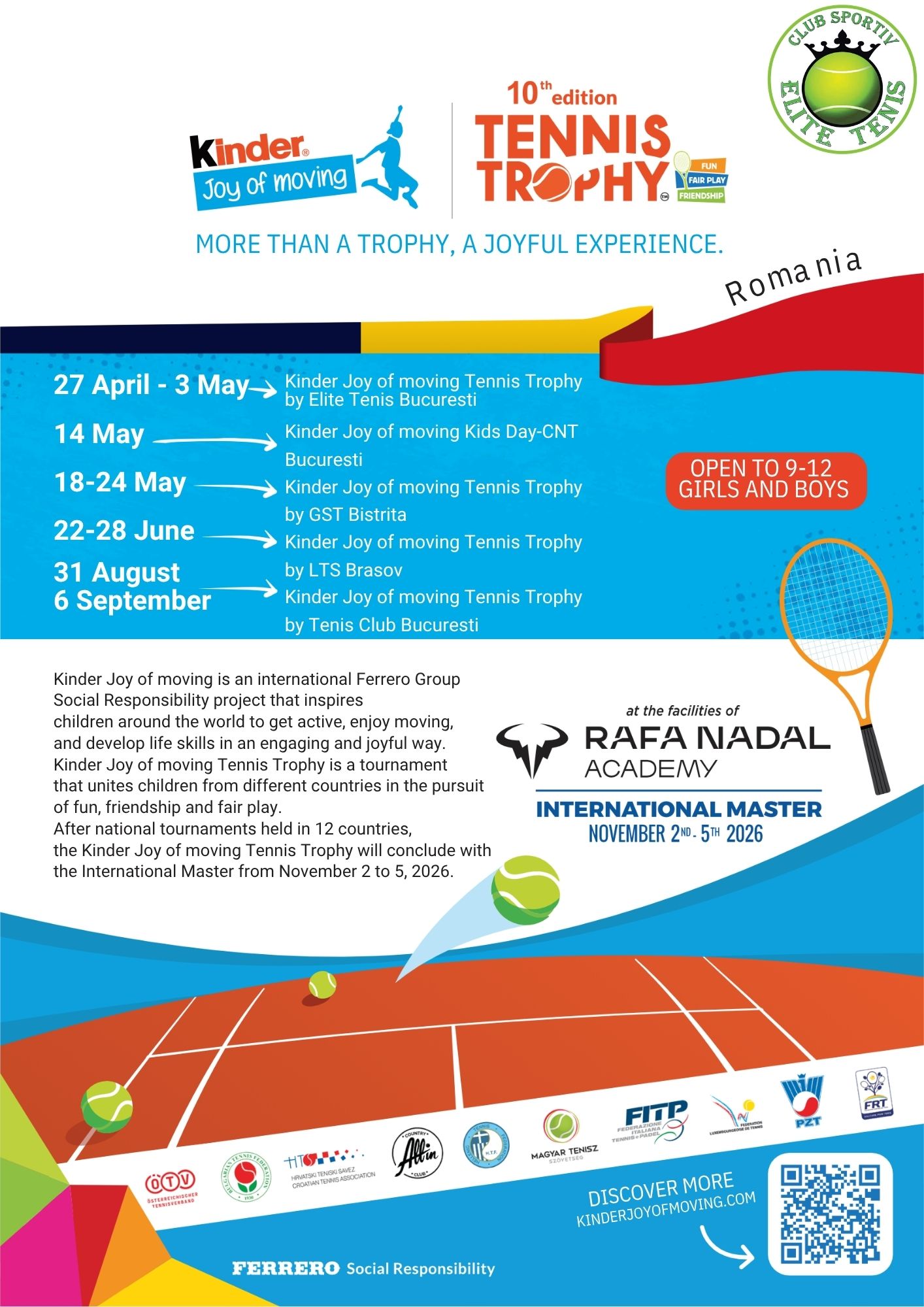 Proiectul Kinder Joy of Moving Tennis Trophy transformă tenisul într-o experiență de familie și într-un joc al valorilor. Copiii joacă fără arbitri, fiind încurajați să aplice principiile fair-play-ului, onestității și respectului reciproc, într-un cadru în care competiția este înlocuită de cooperare și prietenie.