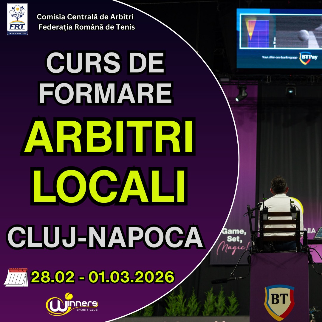 Comisia Centrală de Arbitri din cadrul Federației Române de Tenis organizează, în perioada 28 februarie-1 martie 2026, la Winners Sports Club Cluj-Napoca, un curs de formare arbitri la nivel local.